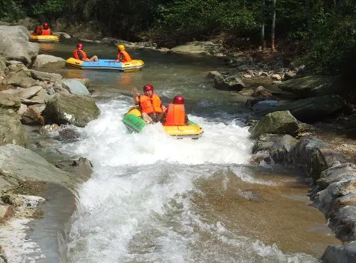 飞水漂流总落差达150余米,有多个8米的落差,漂流过程中时而惊险,时而平缓,让人高潮一波接一波,爽到极点,惊险刺激的飞水漂流让人享受飞一般的感觉。乘船飞流而下,但见两岸群峰巍峨,森林葱绿,竹海婆娑,风光无限,惬意万分。